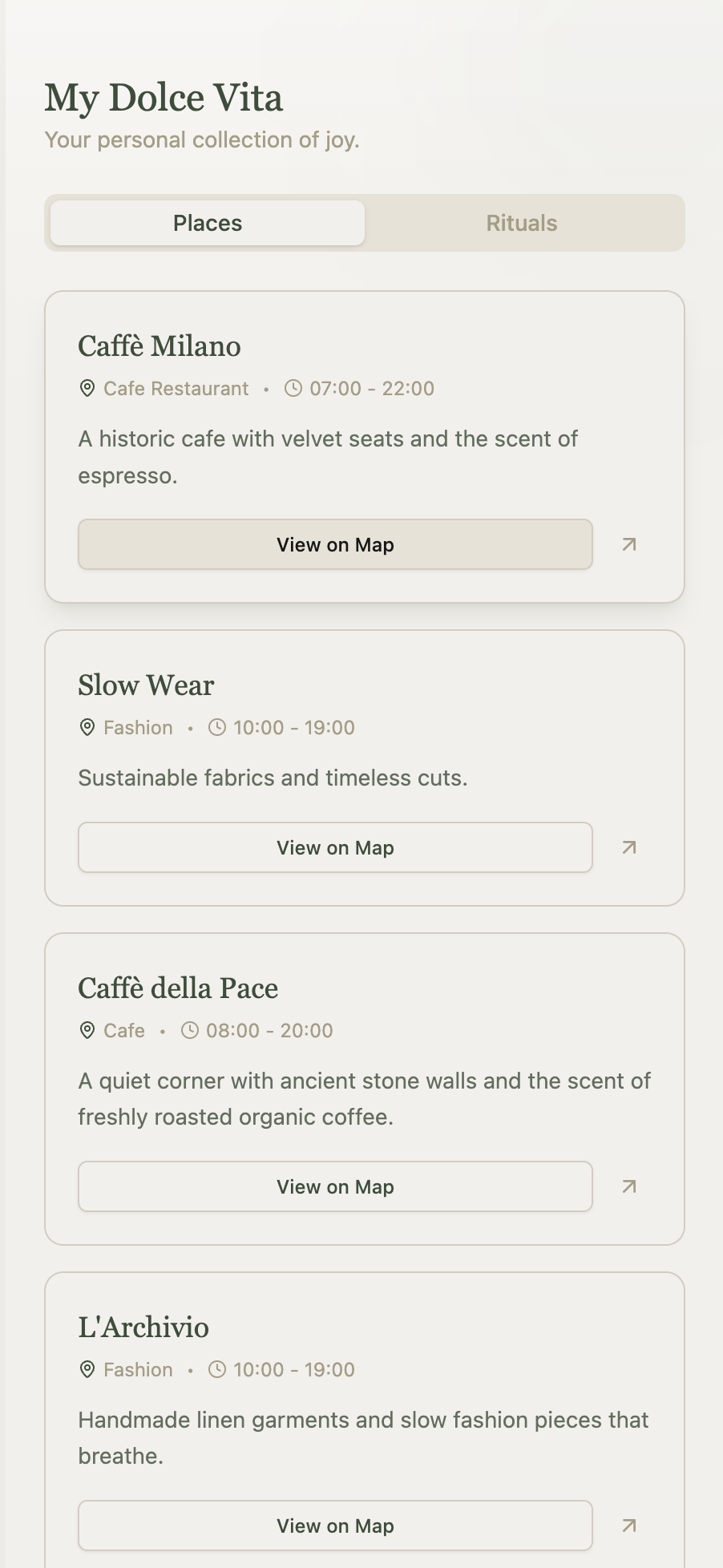 Unlike Google Maps with generic filters, The Natural App features a handpicked network of local producers, ethical fashion stores, sustainable restaurants, cafés and supermarkets.